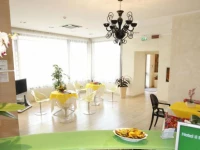 Гостям предоставляется скидки в пиццерии и ресторане, которые расположены в одном здании с отелем. Завтрак подается в баре и лобби отеля.