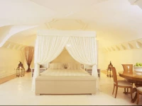 Если Вы всегда хотели побывать в настоящем средневековом замке, то это желание легко исполнить, ведь отель «Меззаторе» занимает территорию, принадлежащую ранее особам королевских кровей. Башня была построена еще в 17 веке и защищала местных жителей от врагов, а затем перешла в наследство барону Фассини. Здесь все осталось по-прежнему – каменная кладка, зубчатая стена наверху и пустые бойницы, откуда в закатный час можно любоваться прекрасными видами залива и горы Сан Монтано.
