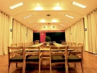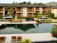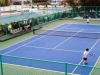 Отель представляет собой несколько двухэтажных вилл с обычными номерами, две – VIP, одна из них – президентская, 2-хэтажный ресторан, достаточно большой, ресепшен и 2 теннисных корта. Общая площадь кажется не такой уж большой из-за количества строений. Территория зеленая, засажена соснами, кустами, деревь