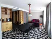В номере также имеется мини-кухня с большим обеденным столом и стульями, микроволновая печь и чайник.