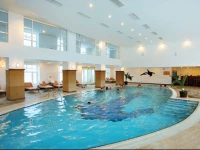 Питание «ALL IN ONE»: завтрак, обед и ужин – шведский стол, чай-кофе и выпечка, легкий полночный ужин, алкогольные напитки местного производства, различные соки, пиво на разлив (из бочки), вина столовые. На территории отеля: основной ресторан «Карделен», а ля карт ресторан «Stube Inn», по предвадительному заказу в составе коцепции «Crystal Pub» по пятницам и субботам предлагает вечернее меню «Schnitzel Night», кафе «La Dolce Vita»; 3 бара: «C?g Bar», «Disco Bar», «Vitamin Bar».