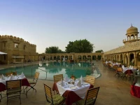 Отель Fort Rajwada (Форт Раджвада) 5* расположен в Джайсалмере, в 6 км от аэропорта и в 2 км от железнодорожной станции. Отель находится в тихой сельской местности на окраине города и представляет собой дворец с потрясающими интерьерами в традиционном стиле. Отель предлагает шикарные номера в стиле Раджастани, большой выбор услуг, бассейн, оздоровительный центр, а также бизнес услуги для деловых путешественников.