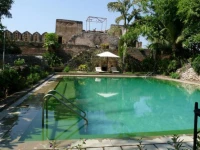 Отель Ahilya Fort 4* расположен в Махешваре, в 83 км от аэропорта Индора и в 81 км от железнодорожной станции. Отель представляет собой крепость, которая была построена великим императором Акбаром в середине 16 века на берегу реки Narmada. В 2000 году крепость была перестроена в отель по просьбе принца Richard Holkar, который является великим потомком махараджи Ahilya Bai Holkar. На территории имеется собственная ферма, на которой выращиваются фрукты и овощи для ресторана, а также при входе в крепость находится храм Ahilyabai Temple. Отель предлагает уютные номера с антикварной мебелью и великолепным панорамным видом на реку и окружающую природу, а также ресторан и бассейн, окруженный пышным зеленным садом.