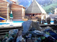 Отельный комплекс на 47 человек расположен в центре п. Славское. Деревянный трёхэтажный дом в карпатском стиле, бунгало. Ресторан и бар, две русских бани.