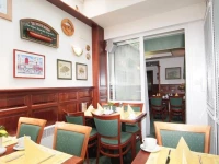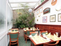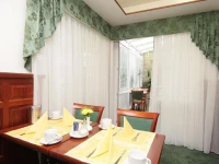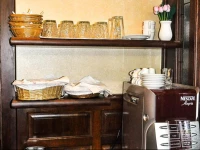 Каждое утро подается завтрак в форме шведского стола. Гости могут позавтракать в уютном зале, в летнем саду или на террасе. На стойке регистрации в течение дня можно приобрести горячие и холодные напитки.