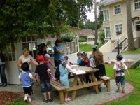 У апартаментов имеется большая прилегающая закрытая территория с детской площадкой, песочницей и батутом, что, несомненно, порадует семейные пары с детьми. А оборудованные на территории специальные места для пикника с мангалом и беседкой позволят каждой компании постояльцев организовать свой пикник на природе в непосредственной близости от цивилизации.