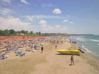 ПЛЯЖ: первая береговая линия, собственный песчаный пляж, протяженность - 100 м; зонты, шезлонги, матрасы, полотенца - бесплатно.