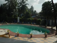 Отель находится прямо у дороги Кандолим Бич Роад (где множество ресторанчиков, кафе и лавок. Вход в отель прямо через открытое кафе, выходящее на улицу. Российских туристов обычно размещают в здании отеля (а не в домиках, котрые представлены на фотографиях). В коттеджах обычно отдыхают англичане. Там действительно и террритория живописнее и не чувствуется близость дороги. Но еще раз отмечу, что р