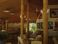 Ресторан отеля оформлен в виде павильона с оплетенными кокосовой веревкой колоннами.