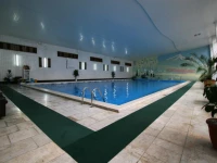 Здравница размещается в современном здании, спальный корпус соединен теплыми переходами с лечебным корпусом, спортивно-оздоровительным комплексом, клубом, столовой.