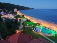 Отель Атриум Бич (Atrium Beach) 4*, расположен на курорте Елените, в 40 км от аэропорта Бургас. До курорта Солнечный берег - 12 км, до песчаного пляжа - 40 м. В непосредственной близости от отеля - рестораны, бары, таверны, аквапарк.