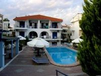Отдыхали в этом отеле в июле 2010. Ехали втроем: я, муж и пятилетняя дочка. Искали бюджетный отель, мы не очень требовательные туристы. Ехали на море, на отдых, а не сидеть в отеле (туда приходишь только спать), поэтому главным критерием при выборе была удаленность от моря и без питания, чтобы не быть заложниками отеля. В поселке очень много разнообразных кафешек, где можно вкусно и недорого поест