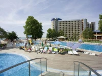 Пользование открытым бассейном отеля Калиакра Супериор (Kaliakra Superior) предусматривает получение 1 зонтика и 2 лежаков бесплатно на 1 номер.