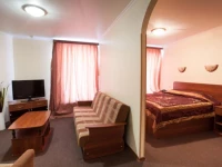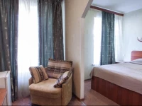 Одноместный двухкомнатный номер, туалет и душевая кабина в номере. Возможно размещение двух дополнительных мест. Завтрак включен в цену.