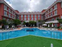 Начну с начала...прилетели в Турцию 10,25,в отель доставили нас только в два часа.Обед в это время уже закончился...нам предложили что-то из фруктов,мило улыбались,но на этом все закончилось.....это так и осталось предложением,покормить нас никто и не думал,заселили на первый,по их мнению,этаж...я бы сказала это цоколь,чуть-ли не подвал!номер был "кристально чист":балконная дверь в разводах,стекло