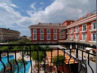Отдыхали в сентябре 2013. С ребенком 1,3 года. Детская площадка практически отсутствует. Пара поластиковых горок и качели. Детский бассейн без подогрева. Бычки у бассейнов не убирают.