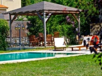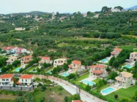 Комплекс состоит из двухэтажных вилл, каждая с тремя спальнями, гостиной, кухней и открытым бассейном.