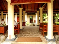 Территория отеля большая и хорошо ухоженная, на территории отеля расположены: бассейн, 3 ресторана, 2 бара, магазины, центр аювердической медицины, сауна, биллиард, теннисные корты.