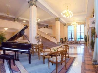 Роскошные интерьеры гостиницы "Галерея", часть из которых скопирована с эскизов Врубеля, отделка мрамором, изысканная мебель, все в духе эпохи русского модерна конца ХIХ века.
