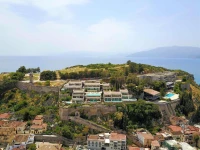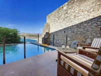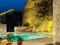 - Территория у бассейна, откуда открывается вид на море и остров-крепость Буртзи – идеально подходит для проведения гала-ужинов