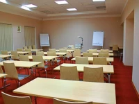 Конференц-зал вмещает 40-45 человек и оборудован современной орг-техникой и соотвтсвующими канцелярскими принадлежностями.