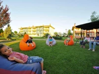 На территории есть парковка, ресторан, бар, термальный комплекс с саунами, бассейны с горками, спортивные площадки, мини-зоопарк, детская игровая площадка и многое другое.