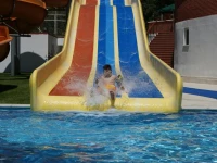 На территории есть парковка, 2 ресторана, бар, открытый и закрытый бассейны, водные горки, спа-центр, конференц-зал и многое другое.