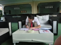 Ресепшн находится на улице. Обычно там сидит такой толстенький дядечка с мордашкой бандитского типа. Сразу скажу - он с вами сюсюкаться не будет. Ему глубоко наплевать на ваше недовольство( единственное его достоинство - это мерседес х5 ,припаркованный прямо на терр