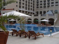 Была в этом отеле в конце мая 2013г. Отель отличный, номера, сервис, качество услуг -это 5* точно. Номера большие, мебель новая. Отель находится в центре, 1-я береговая, но море через променад. Это один из немногих отелей в Варне и вообще в Болгарии, у которого есть своя, хоть и небольшая территория. Так как я была в отеле в мае, то еды было мало -голодным не останетесь, но и большого ассортимента