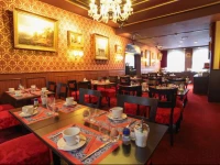 Лобби открытого плана с залом для завтрака и баром оформлено с использованием местных мотивов дизайна, включая черно-красную мебель и картины на стенах. Традиционный зал для завтрака, оформленный с использованием парижской тематики, находится рядом со стойкой регистрации.