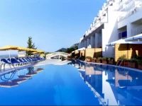 из номеров основного здания. Пляж- песок, но небольшого размера. Стоит на горе. До пляжя-лифт. Идеальное место для отдыха молодежи и с детьми,