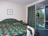 Нормальный отель, была в июле 2006 года, очень удобное расположение, центр Золотых песков, 1 линия, лежаки на пляже бесплатны, возле бассейна надо платить. В отеле старовата мебель, но в целом жить нормально, он полностью соответствует своим 3 звездам, в номере телевизор 3 русских канала. При отеле есть детский клуб, но скорее всего они работают для немцев, просто не уточняла, завтраки нормальные.