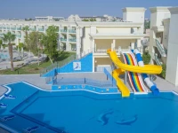 Очень приличный отель!Состоит из двух частей,разделённых променадом с кафе и магазинами.Мы жили на первой линии,территория небольшая,но очень ухоженная,красивые деревья и кустарник,есть садик из кактусов около ресторана на пляже.Уборка каждый день,ресторан не большой.но уютный,еда не плохая,очередей не наблюдалось(отель был заполнен на половину). Море было прохладным купались в подогреваемом бассе