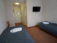 В комнате 2 односпальные кровати (шириной 90 см), телевизор, прикроватные тумбочки.