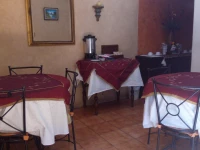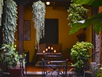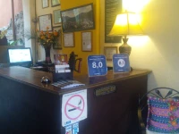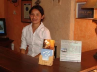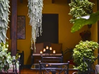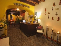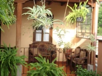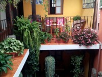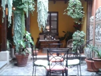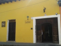Дом в колониальном стиле очень знаменит в Антигуа. Во дворе в саду вокруг колон расставлены уютные столики и стулья. Стены желтого цвета и цвета охры с "sponged" (эта техника очень популярна в этом районе).