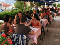 Ресторан с большой террасой предлагает множество блюд местной кухни.