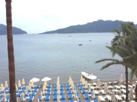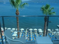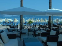 всего мест -120,и лежаков на пляже-120.Берите с собой соломенные пляжные коврики они не мокнут и сохнут быстро-пляжные полотенца не дают