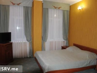 площадью 22 кв м, номера оснащены: ЖК телевизором, wi-fi, мини холодильником, телефоном, сплит-системой, электрочайником, комлектом полотенец, банными халатами, тапочками, средствами индивидуальной гигиены, питьевая вода в бутылках и шампанское 1 бут. при заезде.