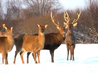 У Вас есть уникальная возможность понаблюдать с охотничьей вышки, как лоси приходят на солонец и лижут соль.