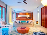 Курорт Amilla Fushi 5* расположен на Мальдивах, на острове Финолхас, входящем в состав атолла Баа. Добраться до отеля можно из аэропорта Мале на гидросамолете, дорога займет около 30 минут, или внутренним рейсом из местного аэропорта Дараванду, время полета около 15 минут, затем - 10 минут на скоростном катере. Остров со всех сторон окружает пляж из белого песка, рядом находится большой коралловый риф. Отель расположен среди джунглей, на территории биосферного заповедника, охраняемого ЮНЕСКО. Гости отеля могут заняться водными видами спорта, дайвингом в Голубой дыре, познакомиться с богатым подводным миром рифа и увидеть дельфинов. Изюминкой курорта являются кенгуру, которые были привезены из Дубайского зоопарка и полностью освоились на острове. В отеле гостям предлагают комфортные номера, хороший сервис, услуги СПА-салона, отменную кухню в ресторанах и отличный отдых на море.