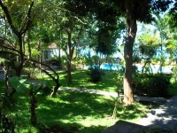 В каждом бунгало имеется терраса с видом на сад, противомоскитная сетка, гостиная зона и собственная ванная комната.