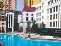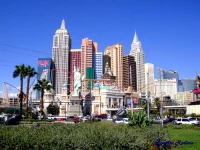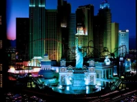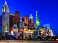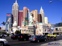 Отель New York New York (Нью-Йорк Нью-Йорк) передает собой общий силуэт Манхэттена. Перед входом стоит 45-метровая копия статуи Свободы, расположенная в окружении зданий, характерных для Нью-Йорка. Перед статуей свободы располагается копия Бруклинского моста.