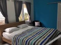 Дом располагает 1 спальней с двуспальной кроватью и 2 спальнями с односпальной кроватью в каждой. Комнаты оборудованы рабочим столом и шкафом для одежды, а пол выложен плиткой.