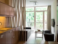 Amberton Green Apartments hotel is situated right next to one of the most prominent symbols of Palanga town – near the Church of the Assumption of the Blessed Virgin Mary. Through the windows of the hotel you can see the quay of the Rąžė Brook. The hotel is located only several minutes walk from the centre of the resort town.