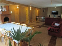 Коттедж в 7км от Минской кольцевой автодороги по Слуцкому шоссе. В доме 4 спальных комнаты, большая гостиная (60 м2) и 3 санузла, на первом этаже все полы с подогревом. Кухня полностью укомплектована: газовая панель, холодильник, СВЧ-печь, посуда. Гостиная оснащена LCD телевизором, спутниковым ТВ, DVD-плеером, караоке и хорошей акустической системой. В стоимость аренды коттеджа также включены безлимитный Wi-fi интернет и настольный футбол кикер. Баня на дровах находиться прямо в доме, а возле дома беседка с мангалом, детская песочница и прудик с водопадом. Летом вся придомовая территория утопает в цветах и в зелени. На парковке во дворе дома имеется 3-4 мест для автомобилей, 2 места под навесом.