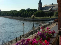 +7 (4012) 592-000Соотношение цена-качество отличное. За двоих на 5 ночей с завтраками вышло 23500 руб. Удобное расположение к достопримечательностям, рядом много кафе и ресторанов, рядом остров Канта, где можно и погулять и сходить на концерт. Все номера гостиницы с видом на реку и остров Канта. В отеле вкусные завтраки, есть и красная рыбка и шампанское. Холодные закуски шведский стол, горячее по меню, но зака
