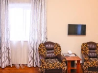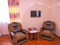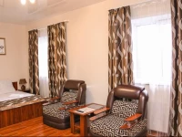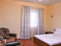 20 кв.м. Просторный,уютный номер с большой двухспальной кроватью,тумбы,столик,мягкая мебель-кресла,плазменная панель с кабельным телевидением,санузел,душевая кабина,туалетные принадлежности,тапочки,фен.