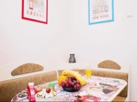 В хостел «Peter House» не зайти: калитка во двор с кодовым замком, звонка нет, таблички нет. Во дворе несколько подъездов, таблички нет. По телефону, указанному на листке бронирования, недовольная девица сообщила, что она там больше не работает. Ждали жильцов дома, которые показали, за какой дверью скрывается хостел. Долго стучали. Открыл рабочий с краской на ушах, делающий ремонт в отеле. Админис