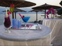 Отдыхали в этом отеле в июне 2008г.и остались очень довольны,находится он непосредственно на берегу,пляж галька,много сосен,поэтому зонтики не нужны,хороший вход в море,но есть морские ежи,плавать нужно в специальных тапочках.Кормили вкусно,правда фруктов было немного,только апельсины,яблоки,бананы и слива.Очень приветливый персонал,детей развлекают в мини-клубе,для взрослых была живая музыка и ин