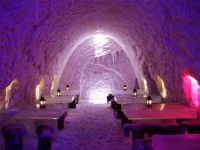 Ледяной ресторан работает с 10 утра до 7 вечера. Необходима предварительная резервация. Обед с 12 до 14, ужин в 19.00.